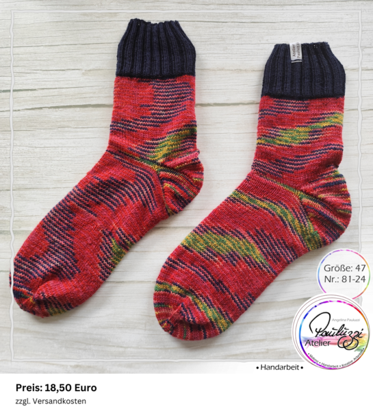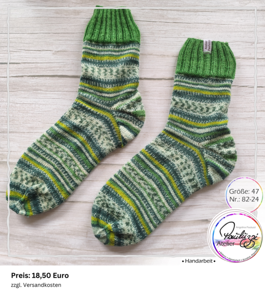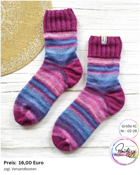 Die hier gezeigten Socken habe ich zur Zeit auf Lager. Der Preis und die Artikel-Nr. stehen immer unter/ auf dem jeweilgen Foto.