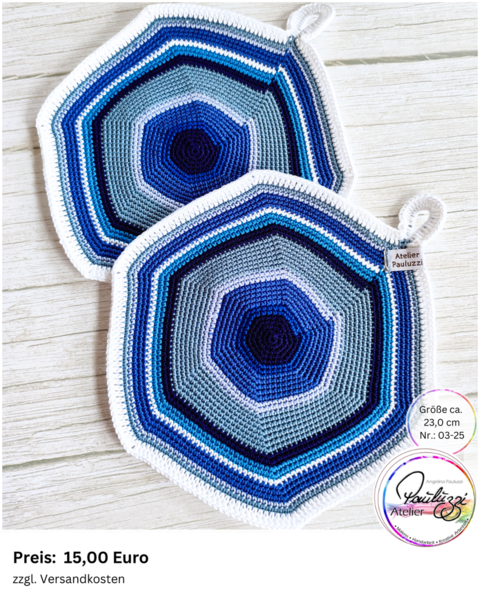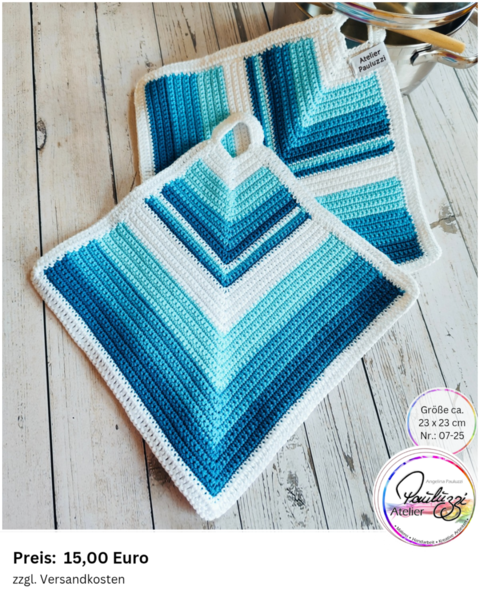 Handgefertigte, gehäkelte Topflappen ... denn Topflappen werden in jeder Küche gebraucht. ;)